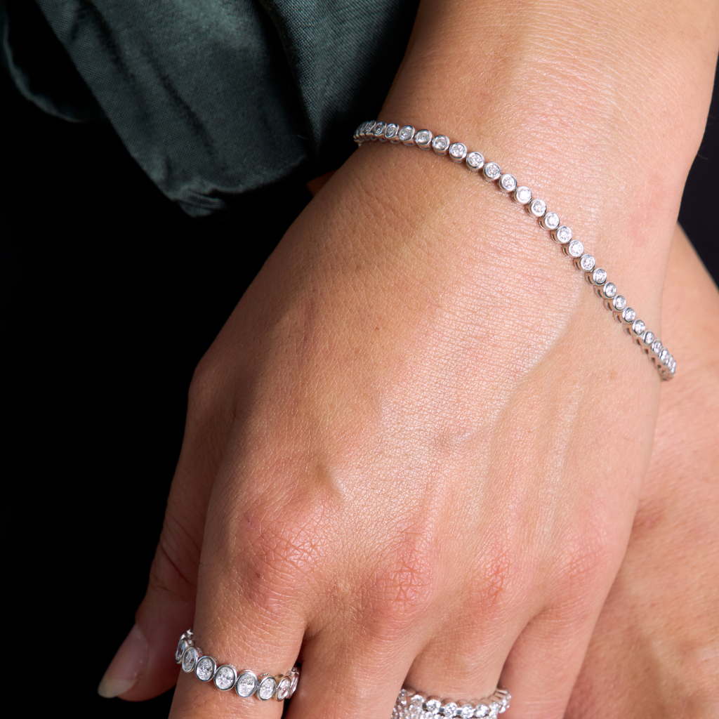 Introducing our new Bezel Tennis Bracelet Collection. Made with 14k solid gold and lab grown diamonds, upgrade your style with this chic everyday staple.