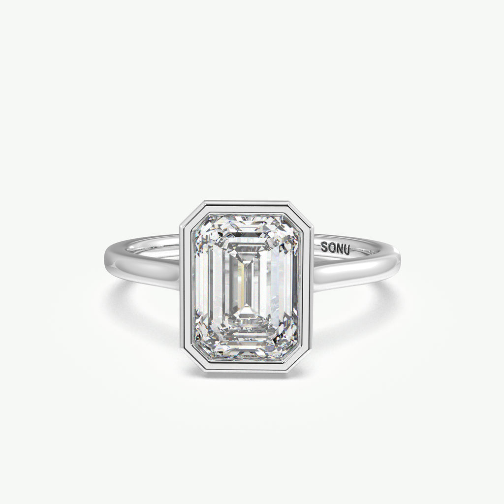 Emerald Lab Grown Diamond Bezel Solitaire Engagement Ring