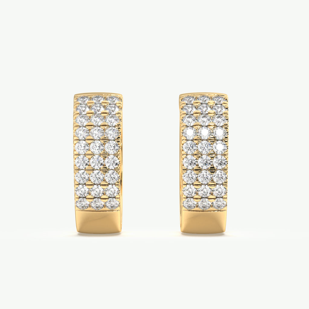 Our Medium Triple Row Diamond Huggies feature an everyday look with three rows of sparkling round diamonds.