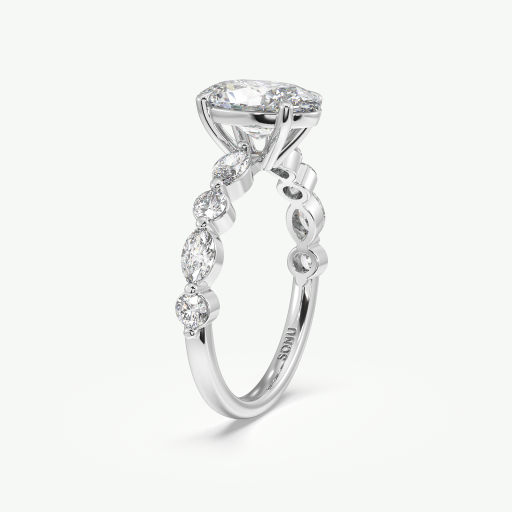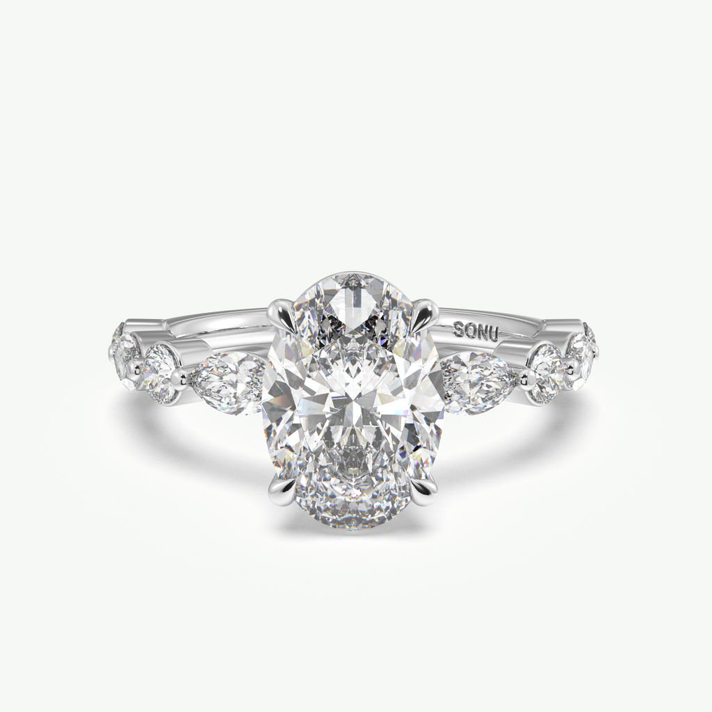 Oval Lab Grown Diamond with Alternating Marquise & Round Band Engagement Ring