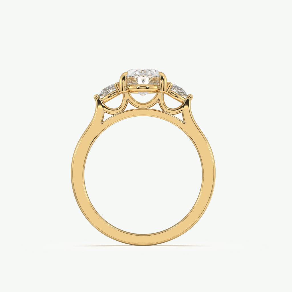 Oval Lab Grown Diamond with two Pear Accent Diamonds set in a 1.8mm band