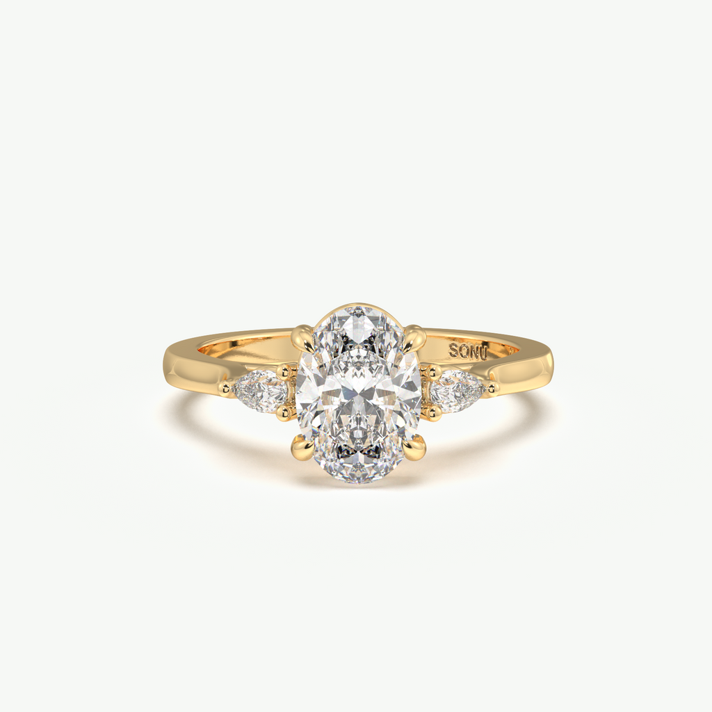 Oval Lab Grown Diamond with Pear Accents Engagement Ring