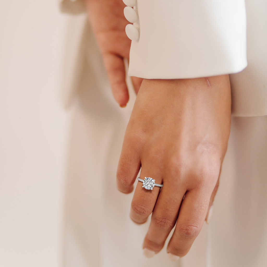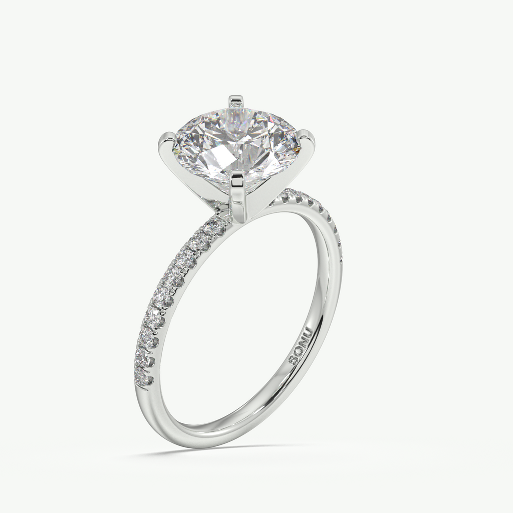 Round Lab Grown Diamond with 1.8mm Band Engagement Ring