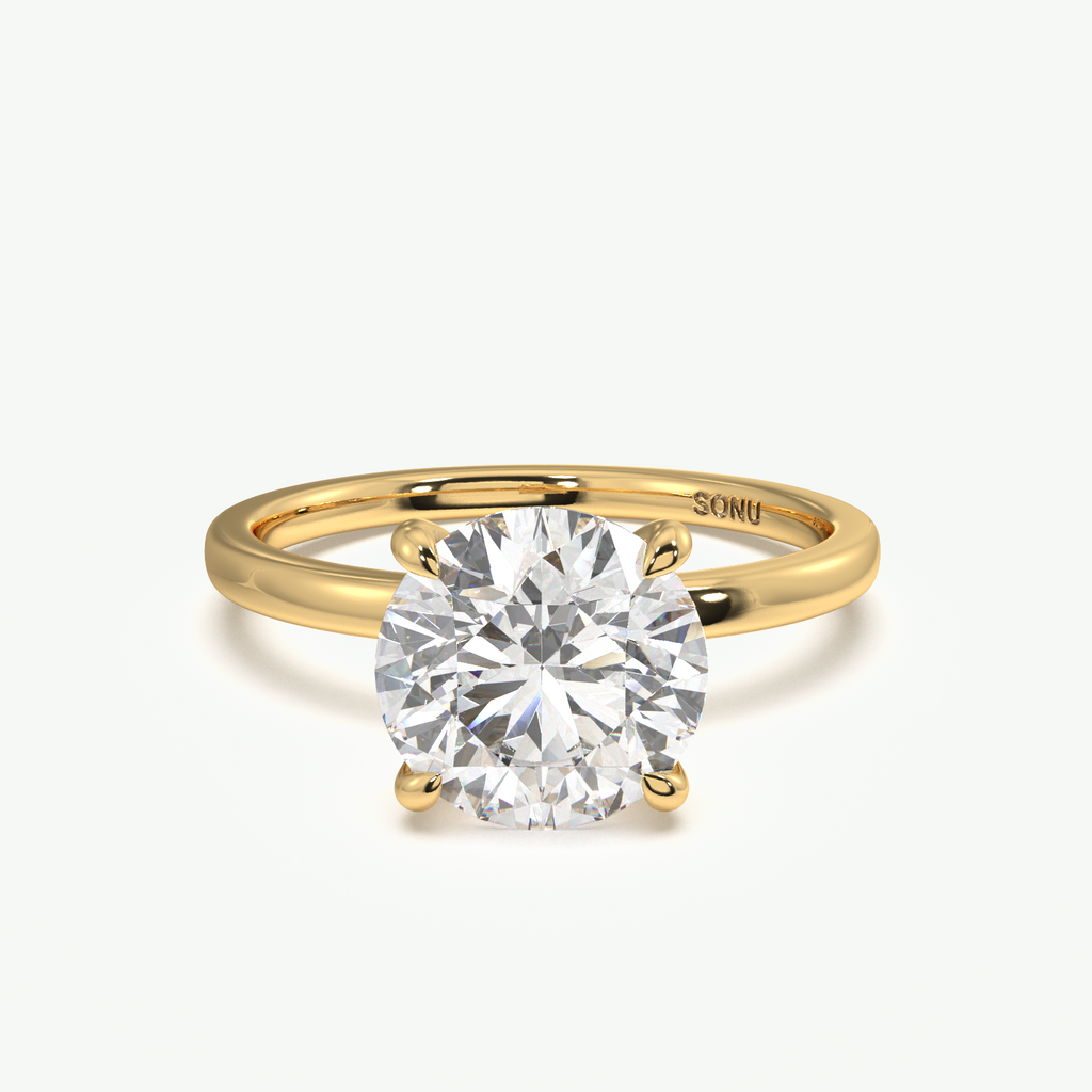 Round Lab Grown Diamond with Hidden Halo Engagement Ring