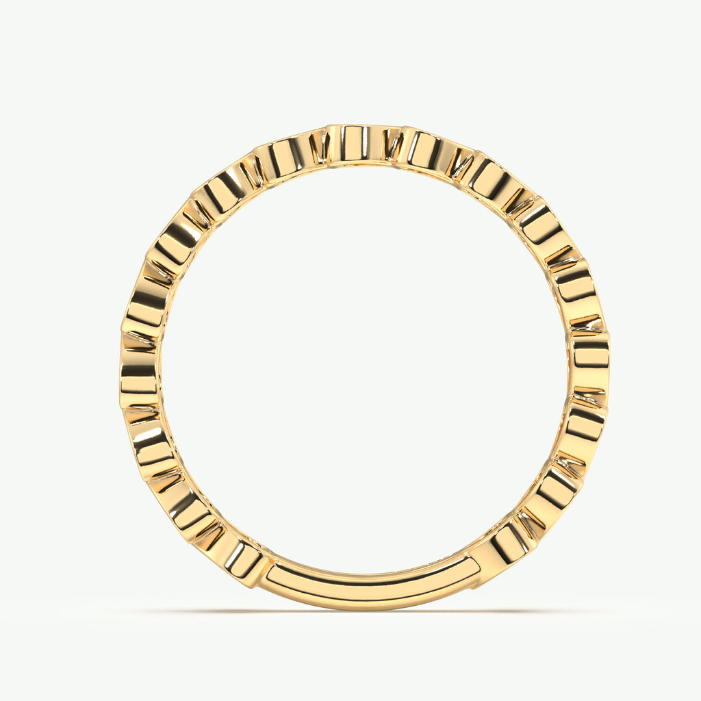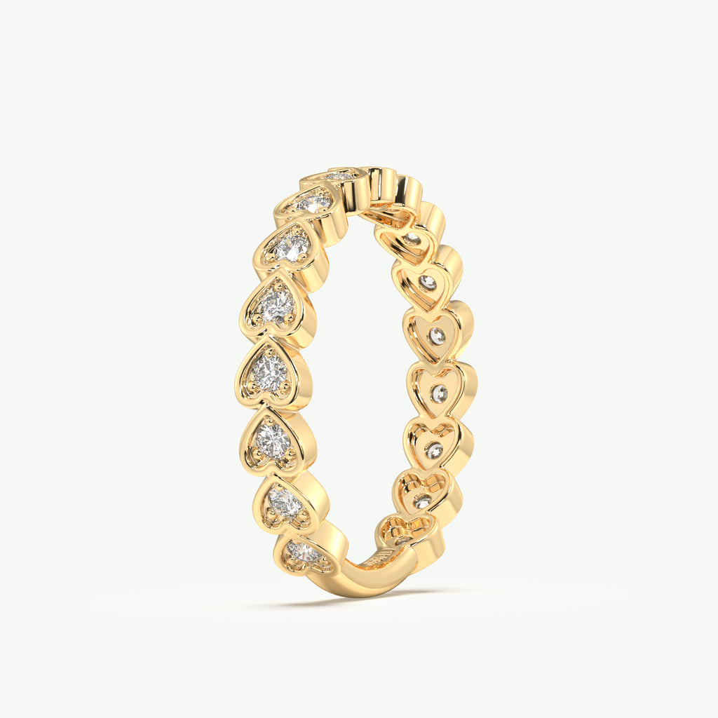 This Bezel Heart Band features east to west set diamonds in an eye-catching heart shape design. The stylish and contemporary band is set in solid 14K yellow gold and is perfect for daily wear.